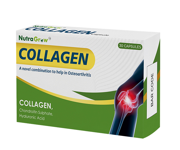 Nutragrow-– Collagen helps in Osteoarthritis conditions. It is administered in many forms to patients suffering from joint and muscular pain. Hyaluronic acid and chondroitin sulfate promote healthy skin and joints. The body’s capacity to produce collagen declines with age. Proteins like collagen are in charge of giving skin its suppleness and flexibility. It makes up 75 percent of your skin and 30 percent of the protein in your body, and it’s found in your bones, muscles, and blood. As you become older, your body has a tougher time producing new collagen to keep you healthy because your old collagen degrades