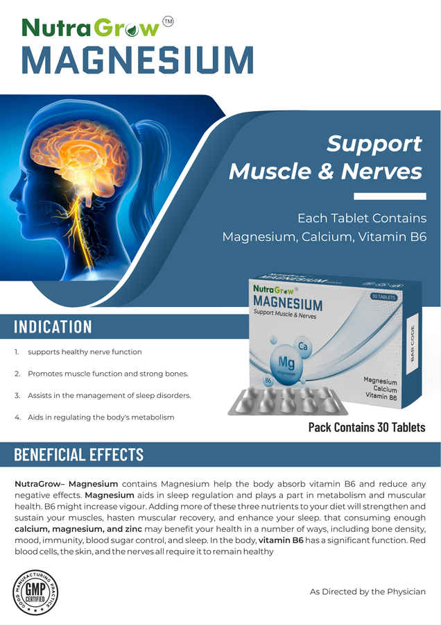 NutraGrow– Magnesium contains Magnesium help the body absorb vitamin B6 and reduce any negative effects. Magnesium aids in sleep regulation and plays a part in metabolism and muscular health. B6 might increase vigor. Adding more of these three nutrients to your diet will strengthen and sustain your muscles, hasten muscular recovery, and enhance your sleep. that consuming enough calcium, magnesium, and zinc may benefit your health in a number of ways, including bone density, mood, immunity, blood sugar control, and sleep. In the body, vitamin B6 has a significant function. Red blood cells, the skin, and the nerves all require it to remain healthy